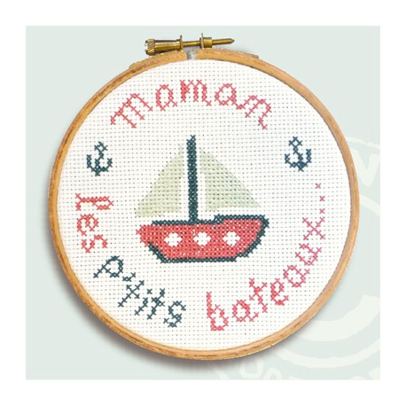 les fils DMC, une aiguille à bout rond, une toile blanc cassé aida 5,5 points.